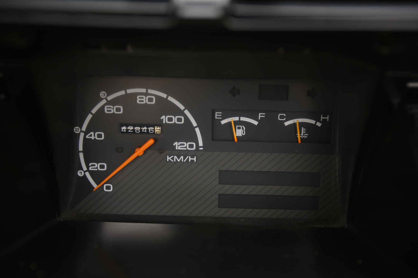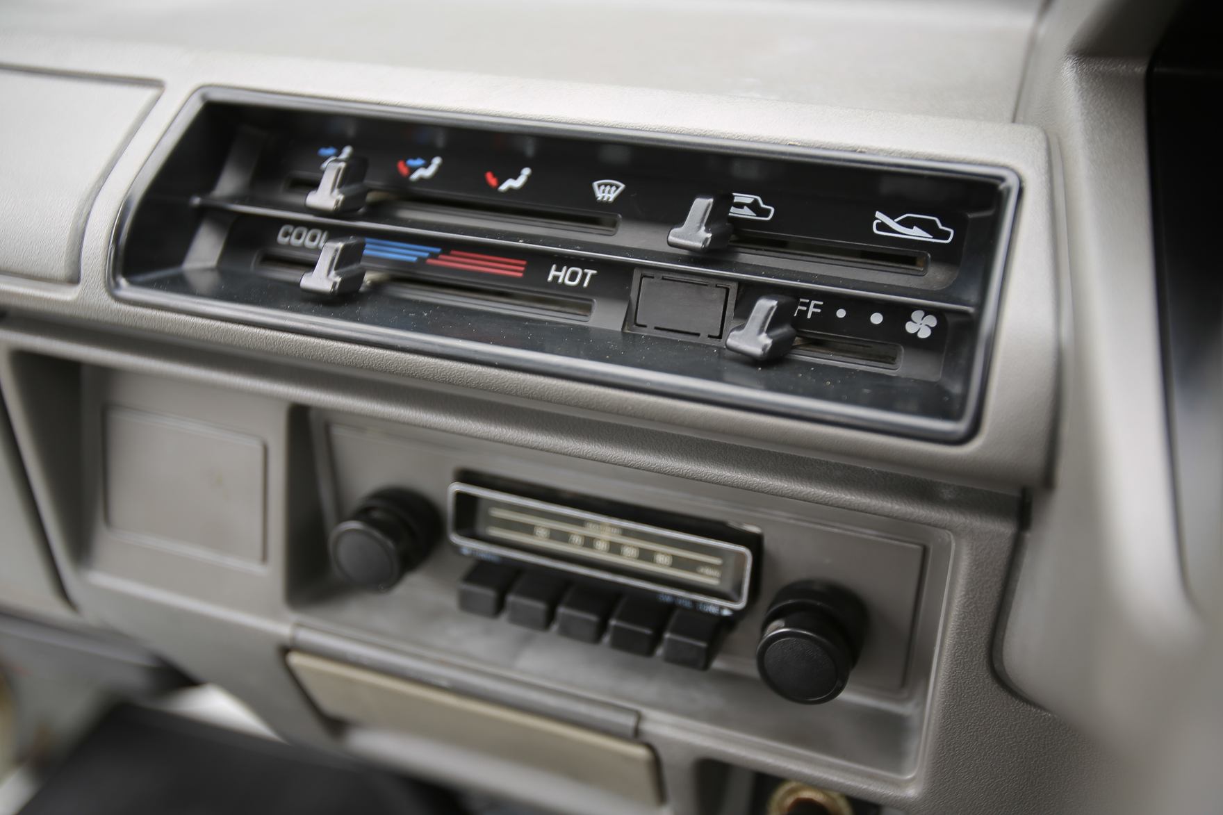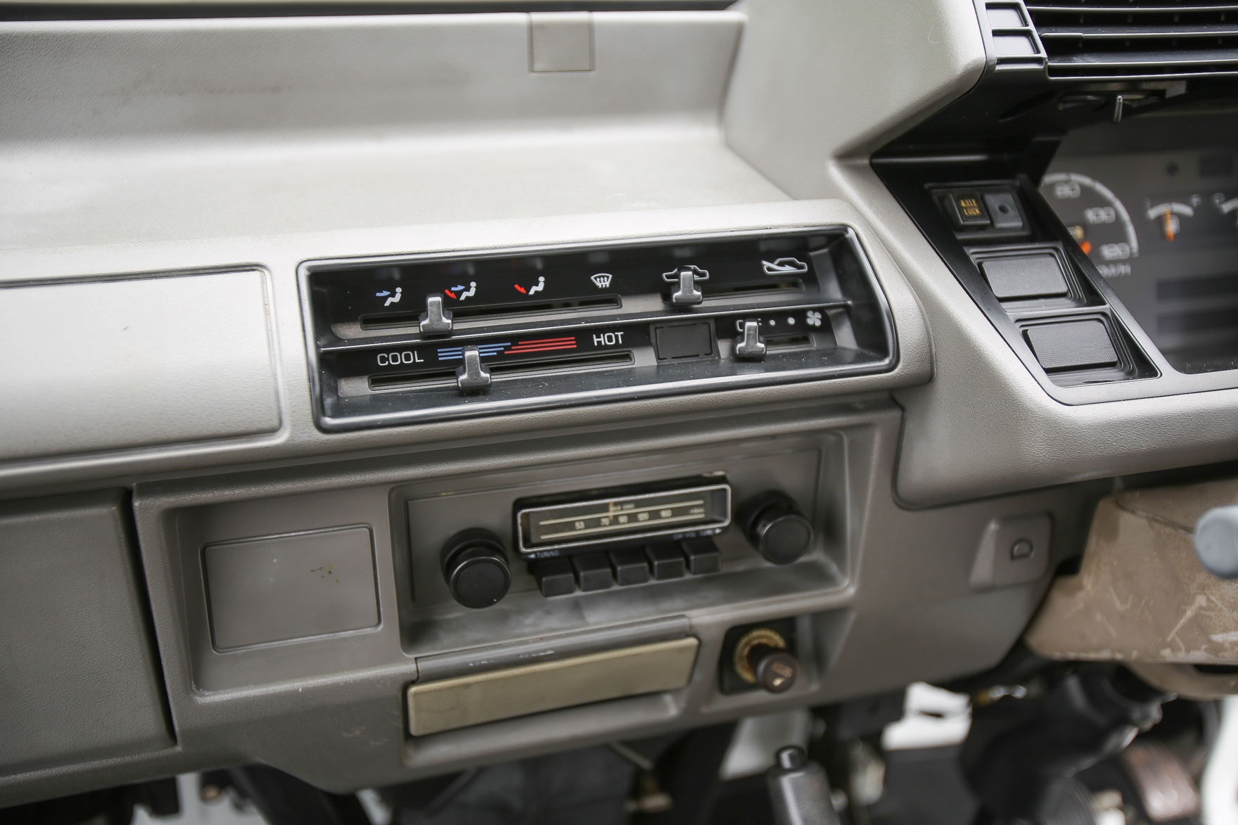 Heat, fan, defroster, manual roll up windows, windshield wipers, horn, hi-low beam headlights, tail lights, turn signals, 5speed manual transmission, bed with fold down sides,