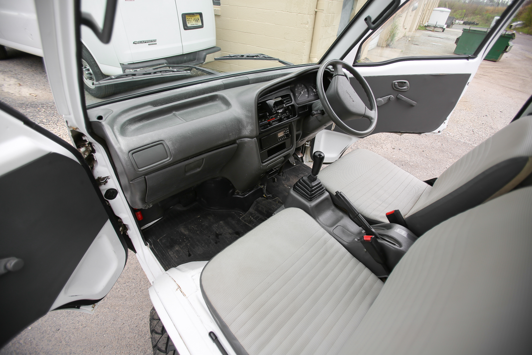 Heat, fan, defroster, manual roll up windows, windshield wipers, horn, hi-low beam headlights, tail lights, turn signals, 5speed manual transmission, bed with fold down sides,