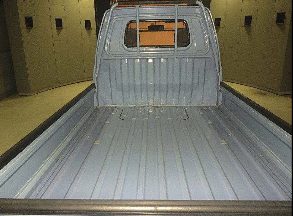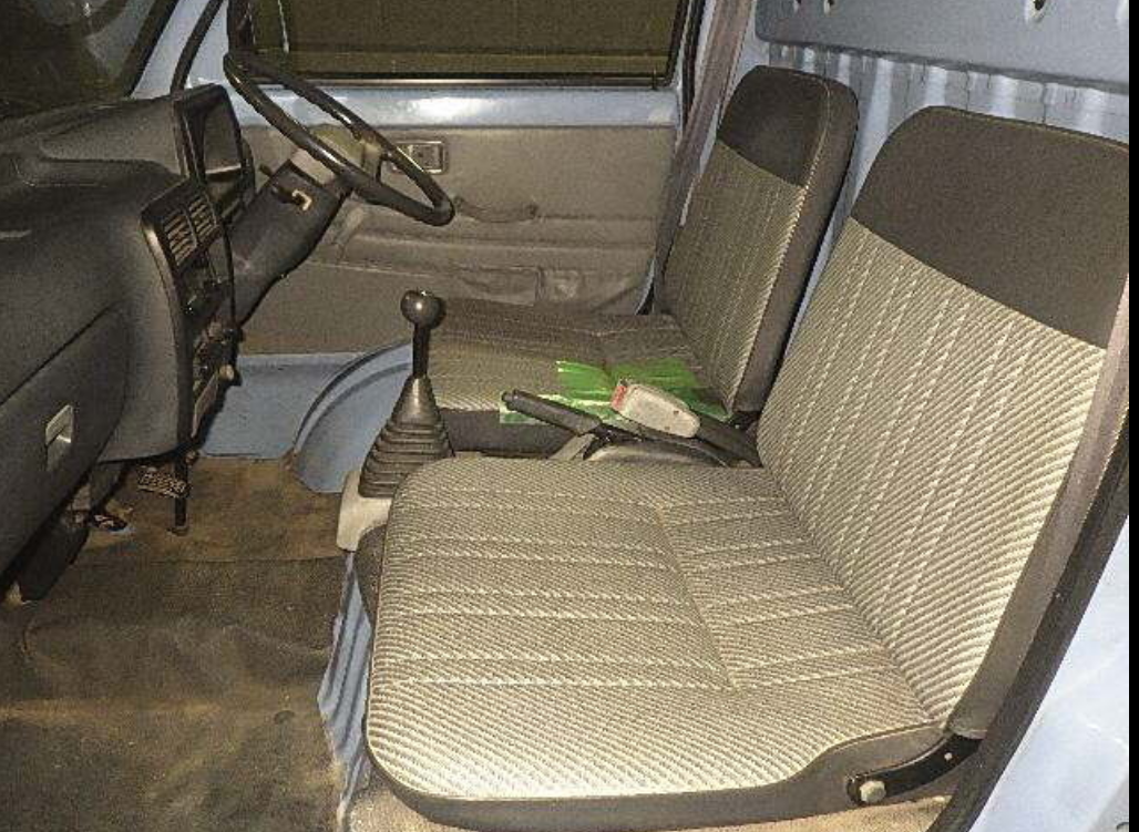 Heat, fan, defroster, manual roll up windows, windshield wipers, horn, hi-low beam headlights, tail lights, turn signals, 5speed manual transmission, bed with fold down sides,