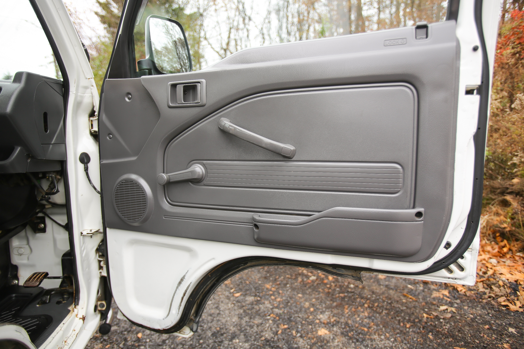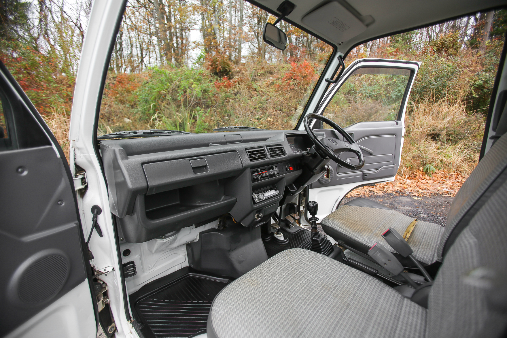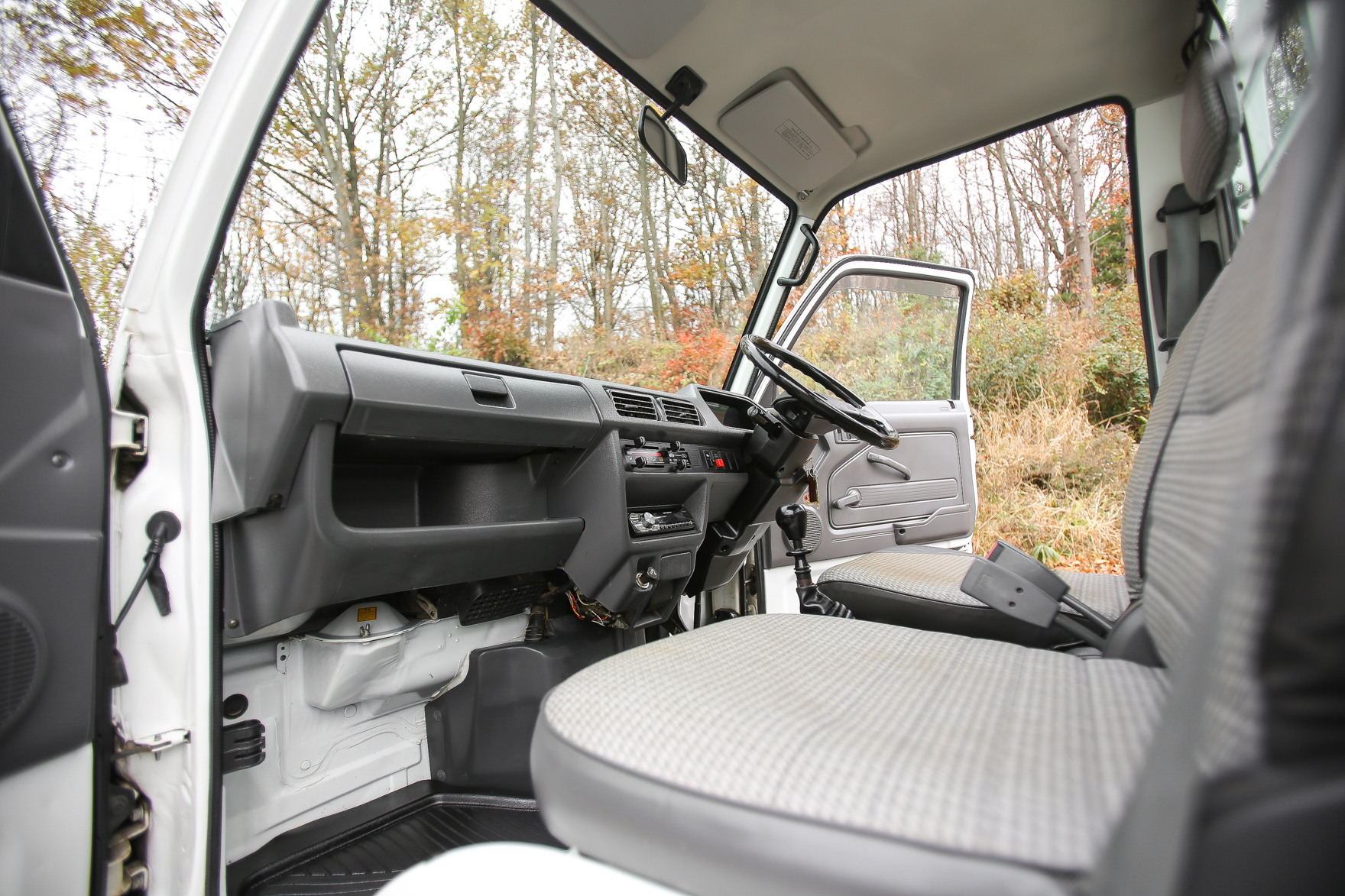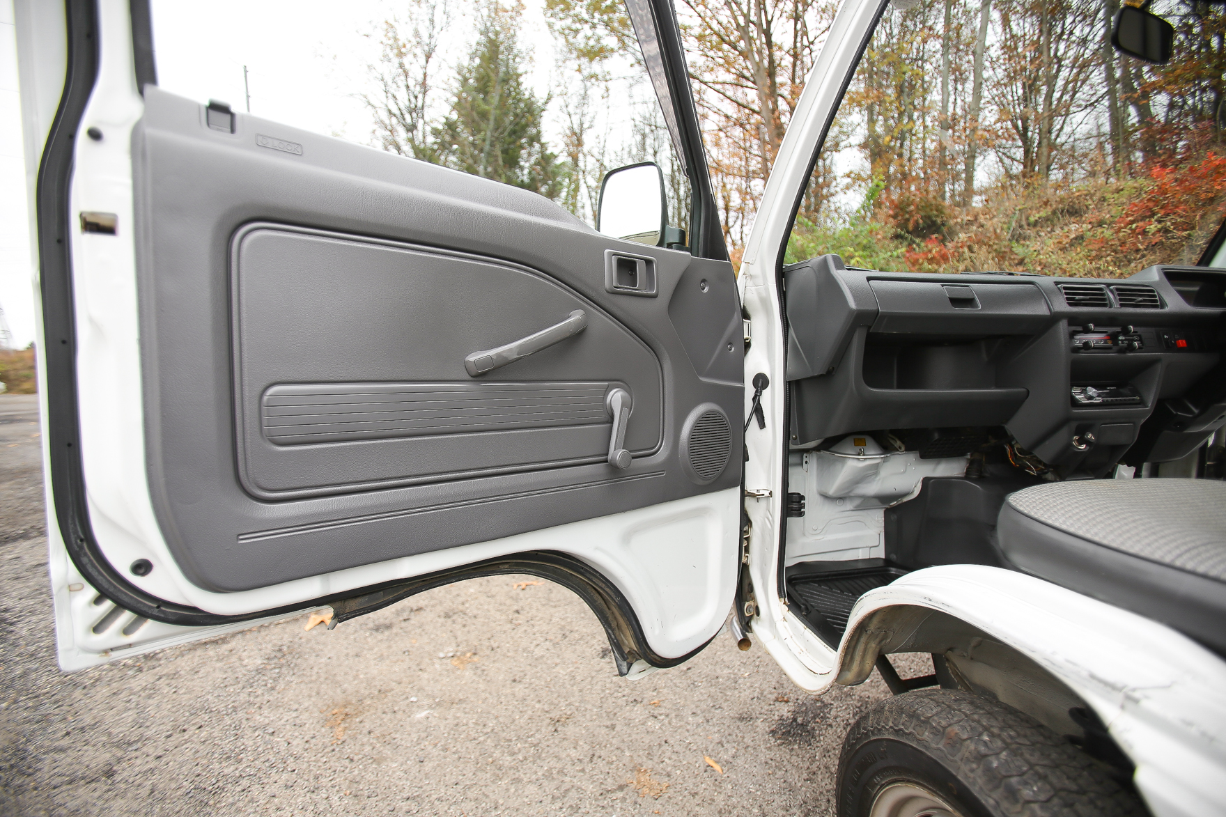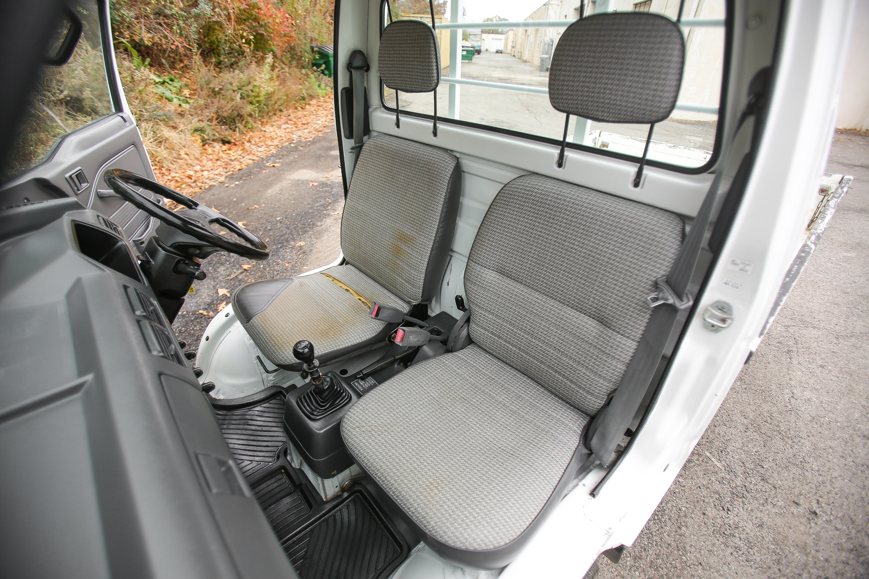 Heat, fan, defroster, manual roll up windows, windshield wipers, horn, hi-low beam headlights, tail lights, turn signals, 5speed manual transmission, bed with fold down sides,