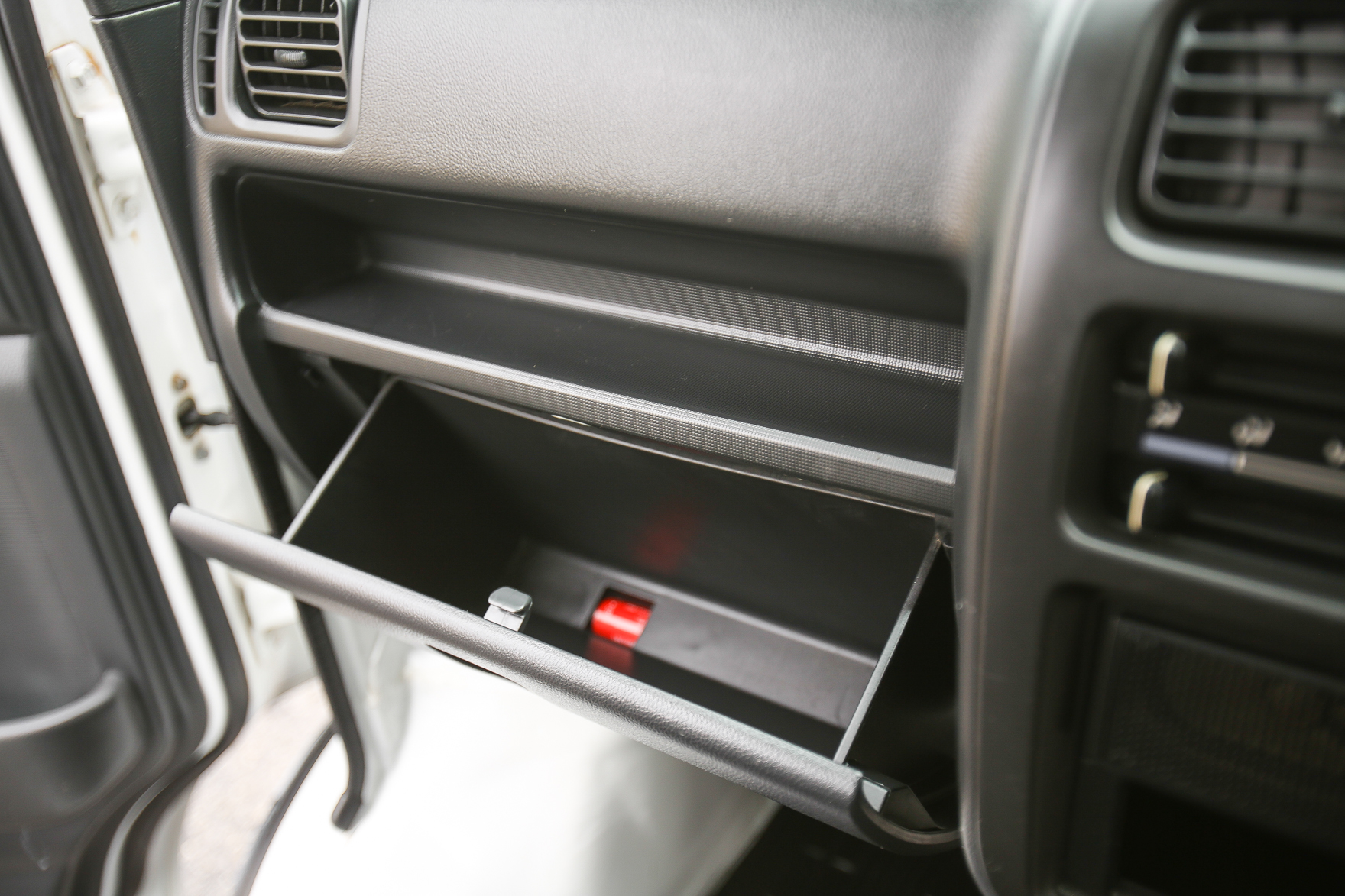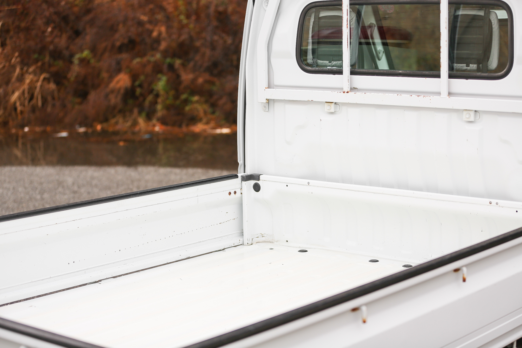 Heat, fan, defroster, manual roll up windows, windshield wipers, horn, hi-low beam headlights, tail lights, turn signals, 5speed manual transmission, bed with fold down sides,