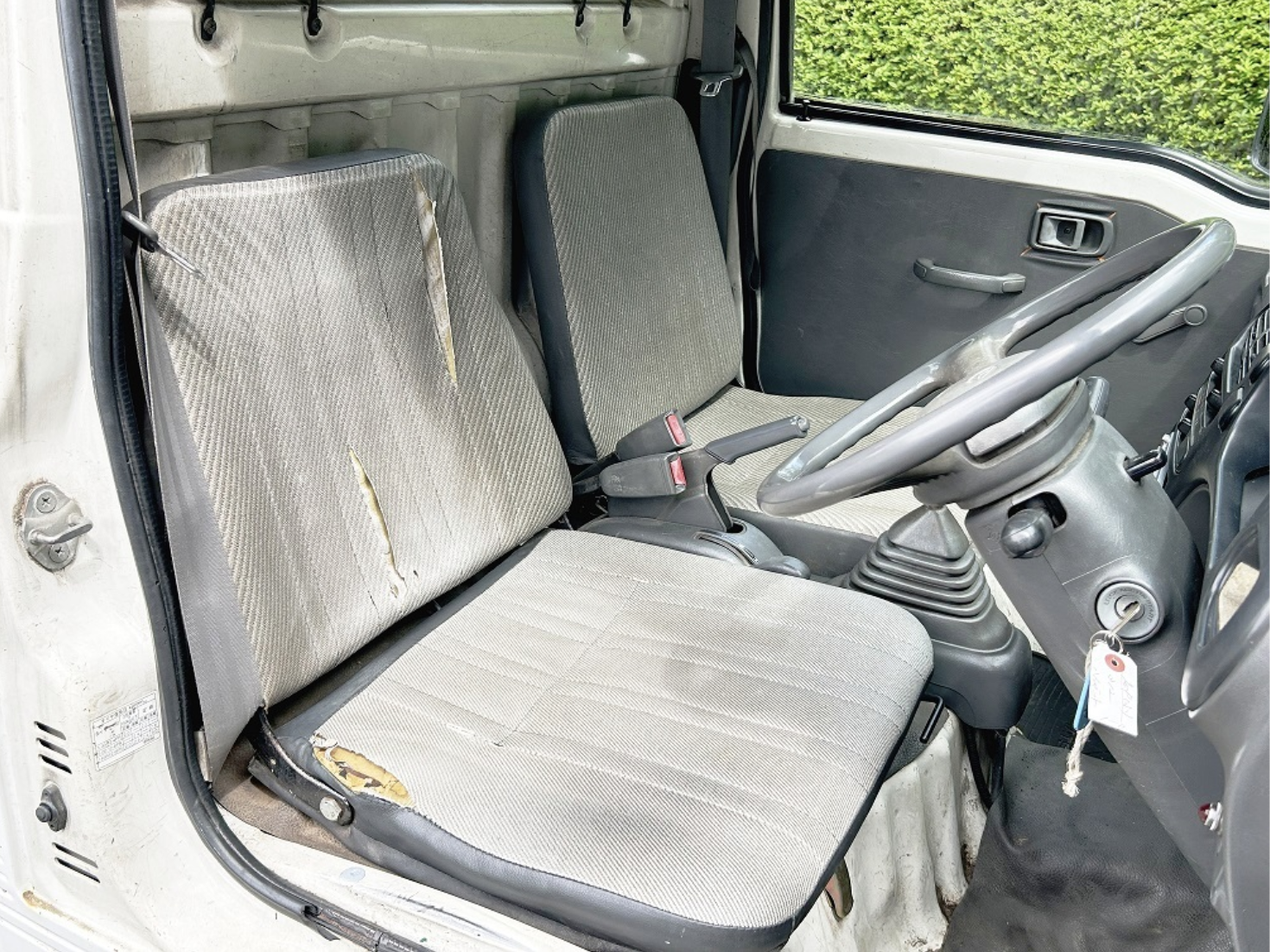 Heat, fan, defroster, manual roll up windows, windshield wipers, horn, hi-low beam headlights, tail lights, turn signals, 5speed manual transmission, bed with fold down sides,