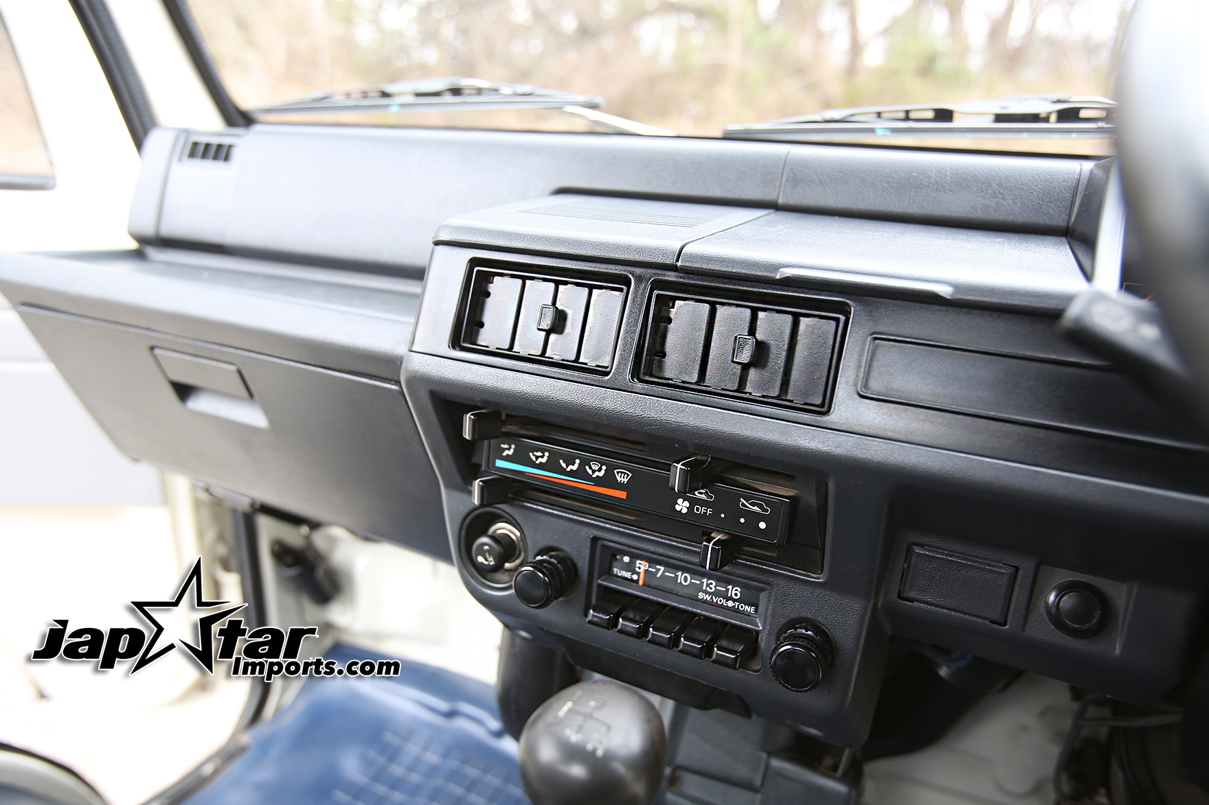 Heat, fan, defroster, manual roll up windows, windshield wipers, horn, hi-low beam headlights, tail lights, turn signals, 5speed manual transmission, bed with fold down sides,