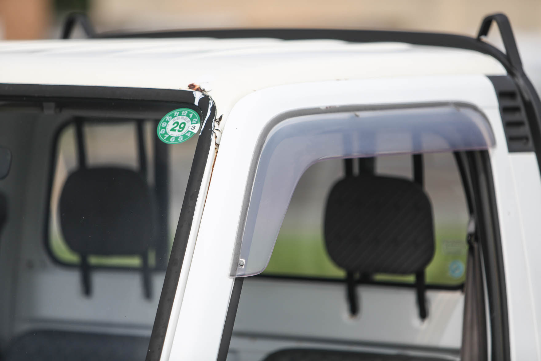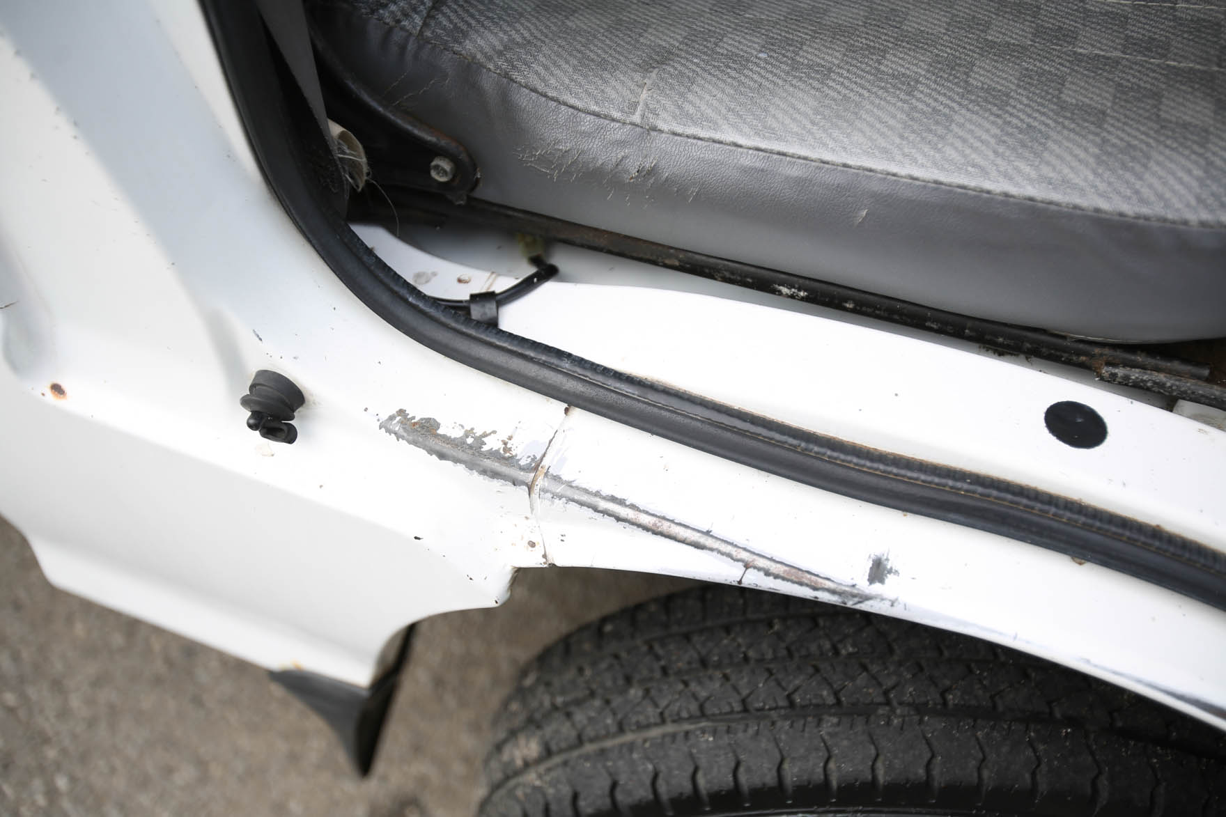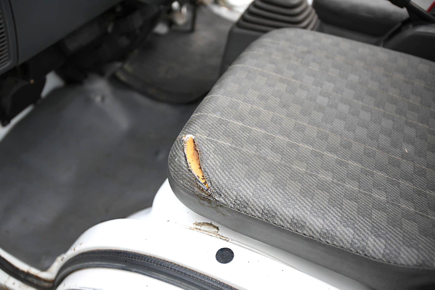 - The passenger seat has a rip.