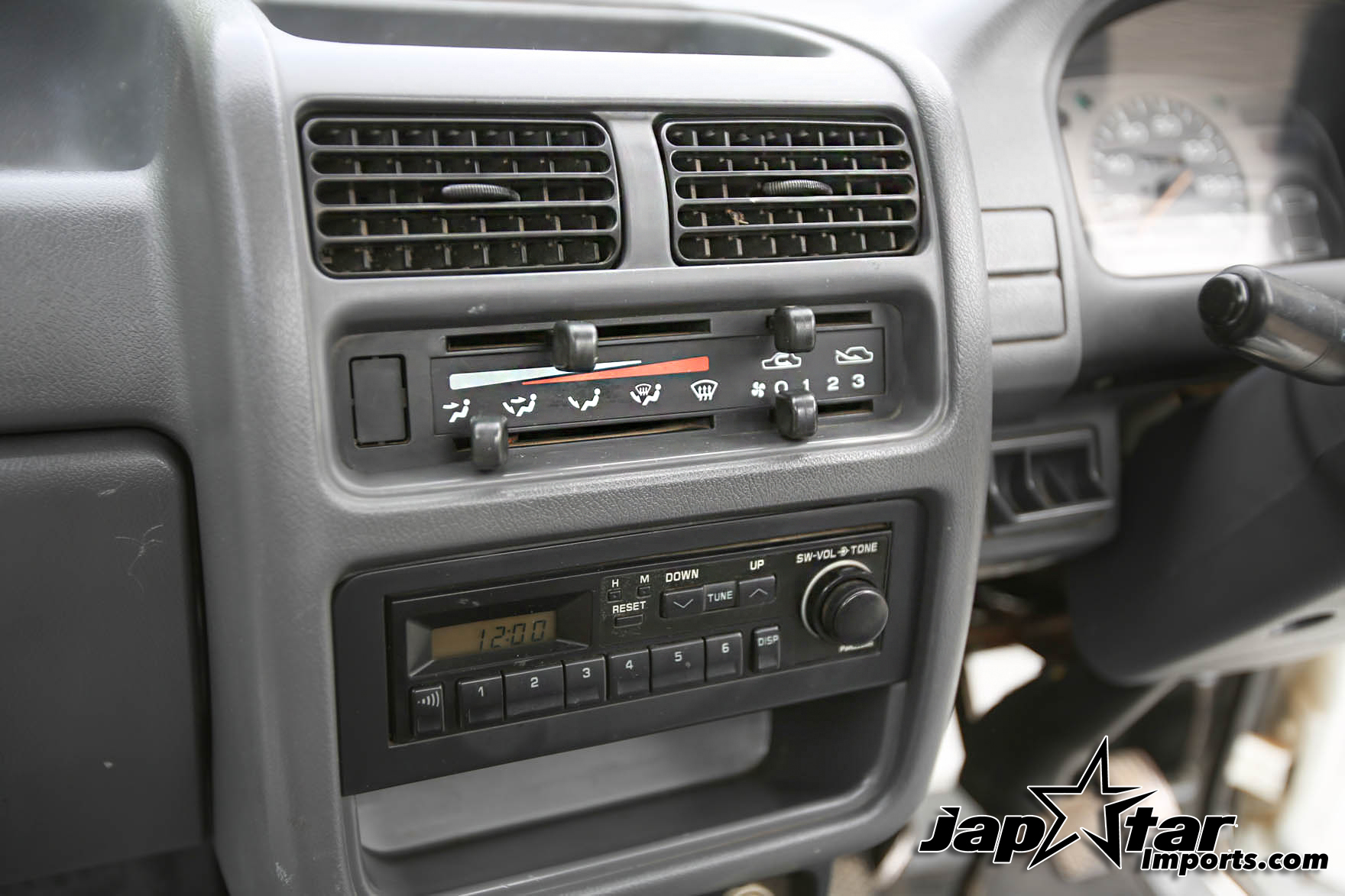 Heat, fan, defroster, manual roll up windows, windshield wipers, horn, hi-low beam headlights, tail lights, turn signals, 5speed manual transmission, bed with fold down sides,